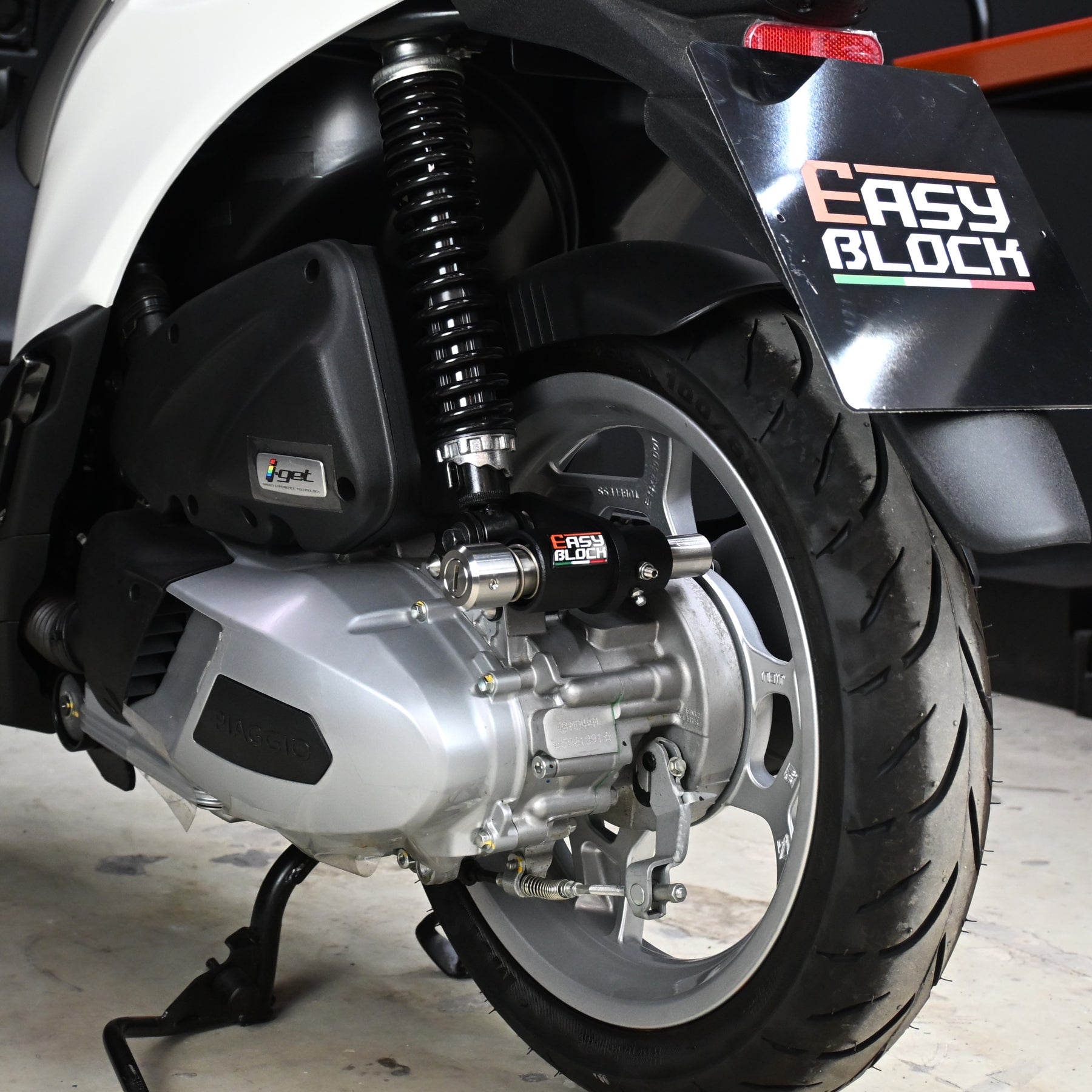 Nella versione per scooter una molla di sicurezza con precarico sul pistone centrale previene l'attivazione accidentale.